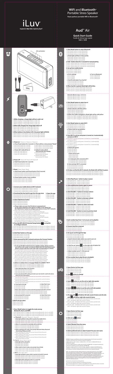 Web iluv aud3 quick start manual (20 pages) lightning dock stereo speaker for iphone and ipod. Quick start guide refers to wifi button on unit as wps, but. Web web speaker alexa iluv wifi portable amazon iluv aud air quick start guide how to use: