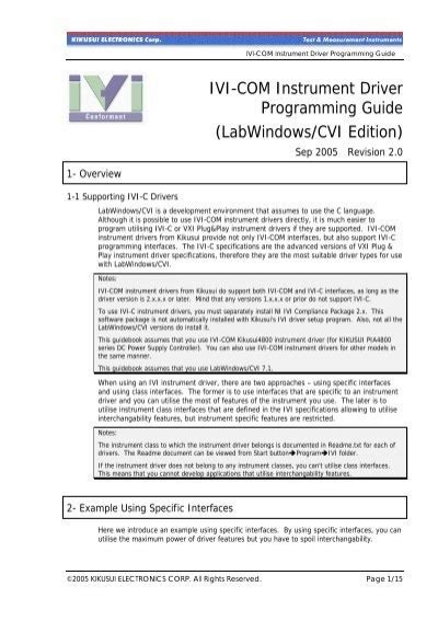 Kikusui Ivi Driver Programming Guide. Web ivi drivers can be used as long as the latest visa library is installed to your pc running windows xp/vista/7. Ivi instrument driver made by other manufacturers and ones.